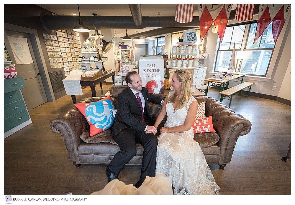 Afterward, we had a quick stroll around Boothbay Harbor for more photos with our lovely bride and groom. Jeremy wanted to stop at Seawicks Candle Company but, sadly, we found the store had just closed. As we were leaving, just up the street, we were stopped by a woman getting out of a car. It was Diane, who works at Seawicks. Her husband had seen us out in front of the store, and told her what he’d seen. She then graciously invited us inside to take some fun photos. That’s what we call top-notch customer service!