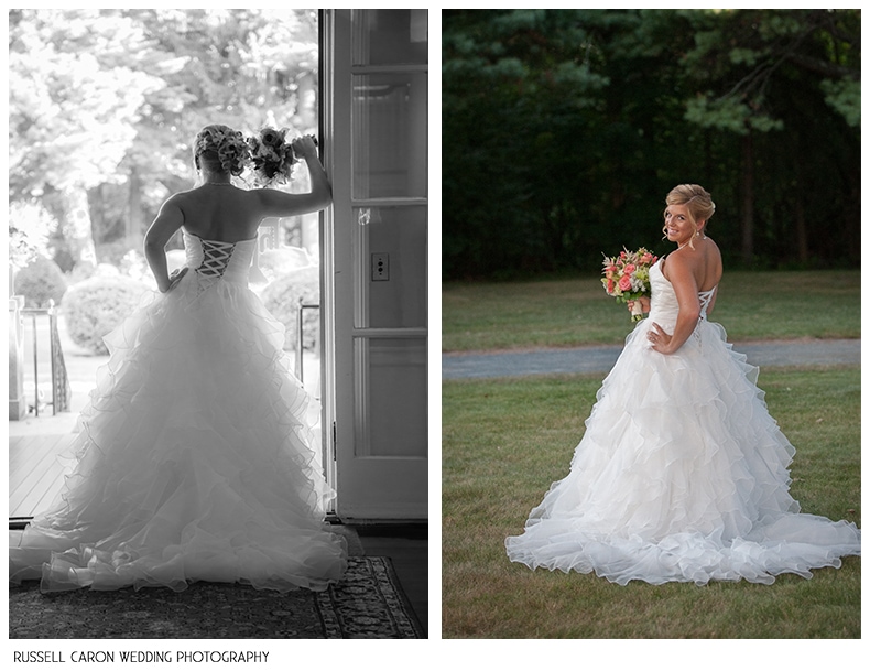 Kate was willing to spend the extra time needed for a variety of bridal portraits. Below, Kate sits quietly on the four poster bed in the bridal suite.