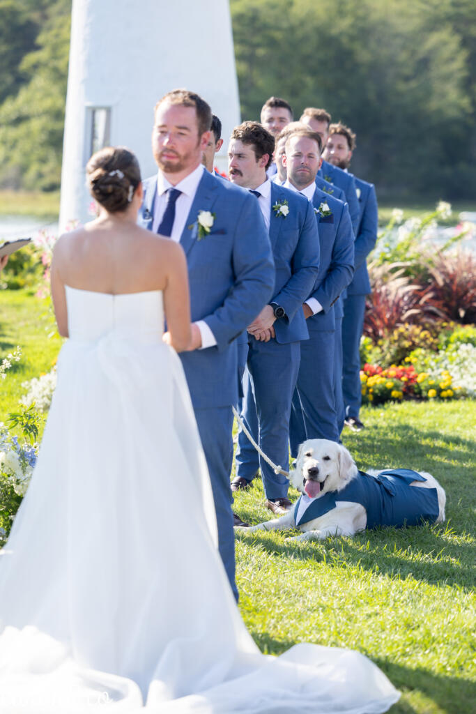 Wedding day plans for Michaela and Joe began well over a year ago, and everything materialized, best we can say, exactly and perfectly as they had envisioned. Now, leading up to the wedding, until literally hours before, the weather forecast included tropical downpours for the day. Knowing how important each of the pieces were to the couple, we the photographers suggested moving the first-look up to Thursday, for which the forecast was good, at least for photo purposes. And that is what we did. Turns out Saturday’s weather was totally rain-free starting early, so having done an initial first-look simply meant we got to do another on wedding day. With a totally different hair and makeup set, Michaela looked beyond stunning for the entire day. The good weather also meant the sailboat arrival for Joe and crew, an outdoor ceremony and cocktail hour. The Jim Ciampi Band rocked the night away. I am not sure how Michaela ever recovered from the hours and hours of that mile-wide smile. Which says it all. What a sweet day, what a sweet couple! And, OMG, their ‘ring bearer’ Caddie, one of the sweetest Goldens I have ever met. See what we mean in the favorites photo set that follows.