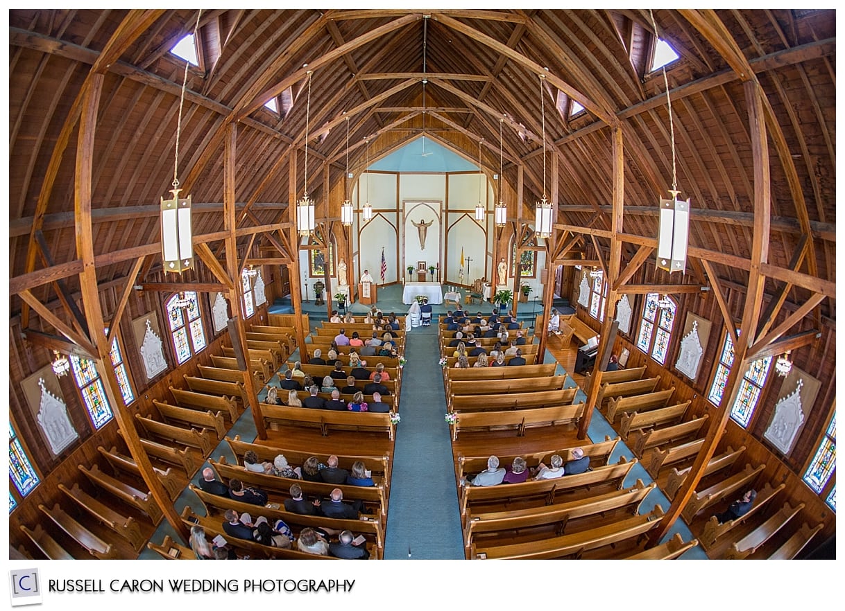 Our signature wide-angle view of the church ceremony, a shot we always capture when there’s a choir loft or balcony from which to work.